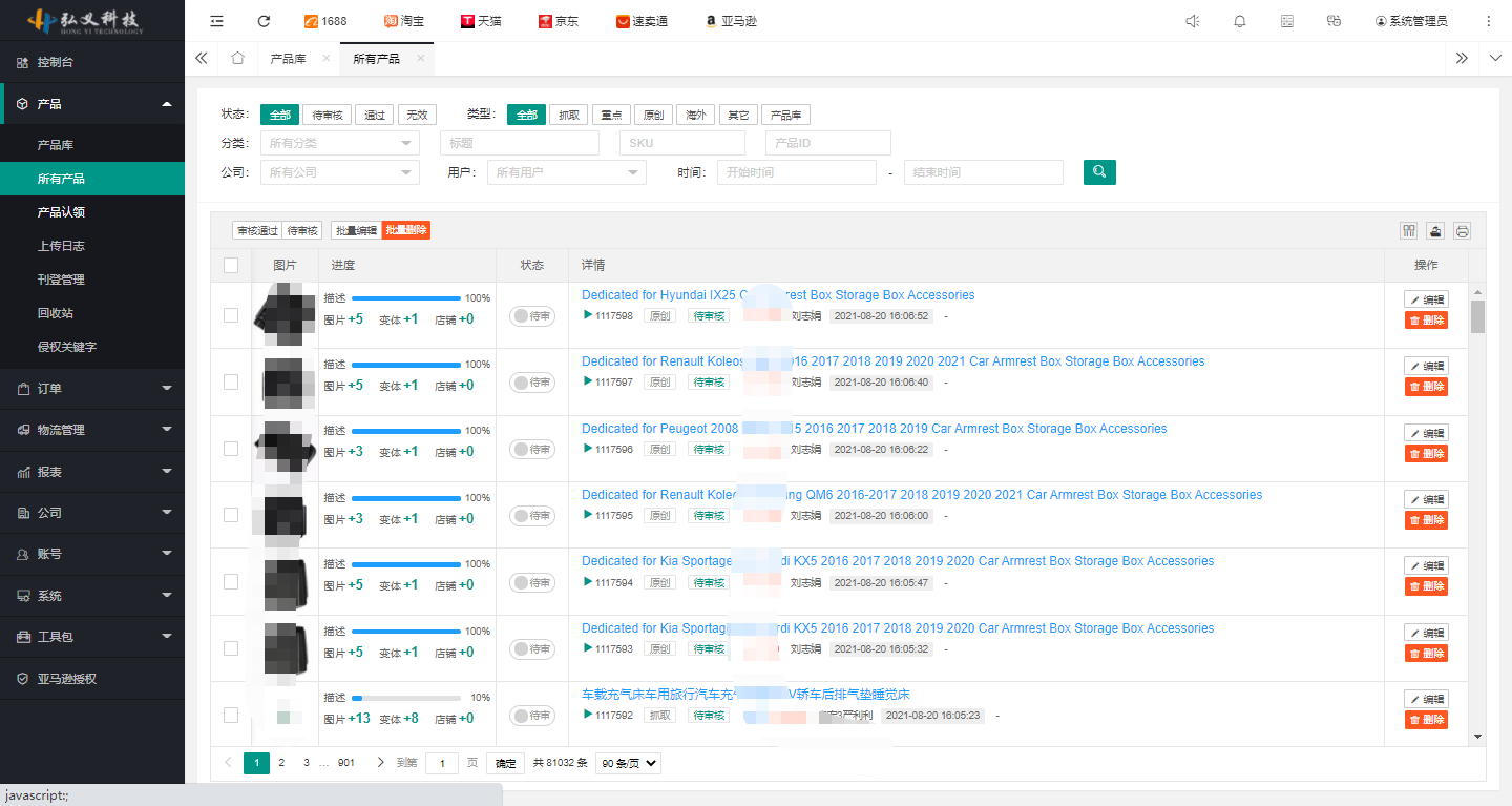 產(chǎn)品管理功能包括一鍵采集、批量刊登、一鍵下架及關(guān)鍵詞查詢等