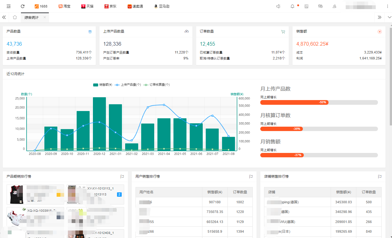 訂單統(tǒng)計、銷售額統(tǒng)計、訂單趨勢分析、暢銷品排行榜等